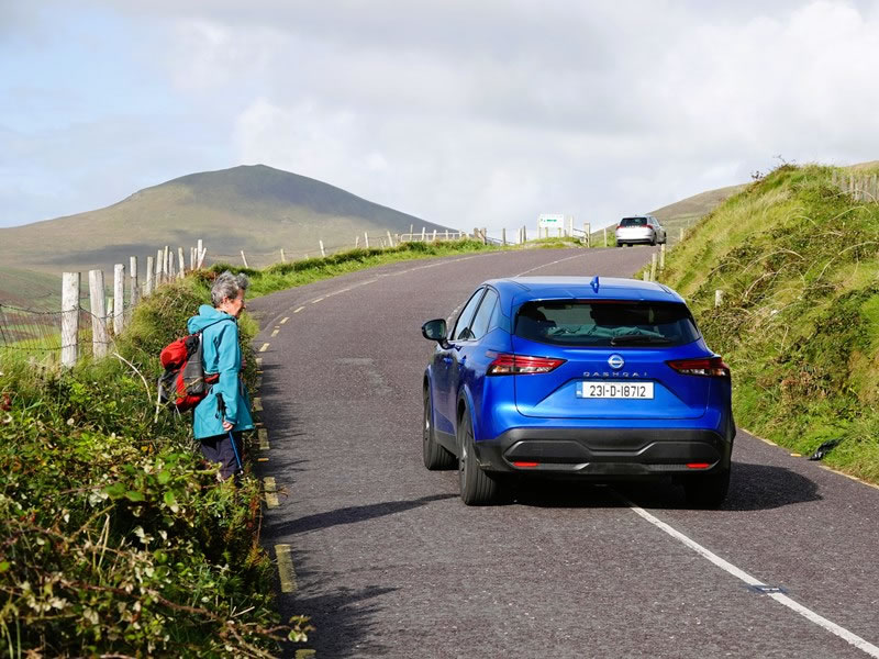 Day 1 (Thursday, 4 September 2025) – Dingle (Daingean Ui Chuis) to Dunquin (Dun Chaoin): Back on the comparatively busy R559 road, we were walking on the left when I took this photograph because we were going round a right-hand bend, but – once again – the cars gave us a wide berth. |