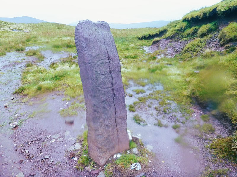 Day 3 (Saturday, 6 September 2025) – Cuas (An Chlais) to Cloghane (An Clochan): … an ogham stone. Ogham stones date back to the 4th to 7th Centuries AD. They display “early Irish writing … using a unique system of lines and notches, providing [an] insight into the early Irish language.” Our trip notes informed us that this stone “shows a Greek cross and an inscription which translates as: ‘Ronan, the priest son of Camogann’.” |