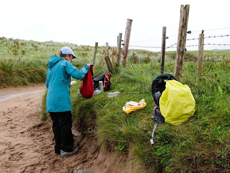 Day 4 (Sunday, 7 September 2025) – Cloghane (An Clochan) to Scraggane Pier: At 12:40 pm we pulled off the beach and put our packs on a grassy bank so we could eat our lunch free from the fear of getting sand in our sandwiches. While we were enjoying our sand-free sandwiches, some French surfcasters parked their car near where we were standing. They got kitted-up and headed down to the beach to do … |