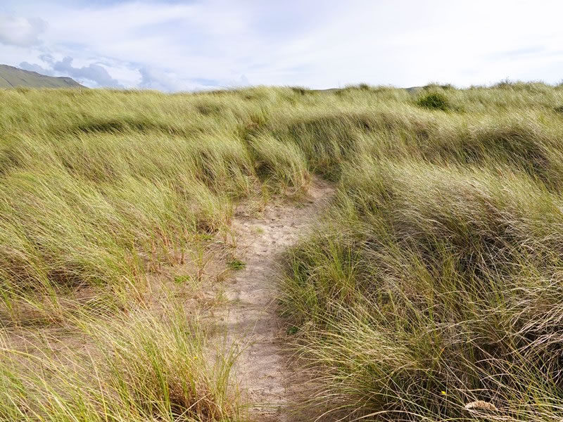 Day 5 (Monday, 8 September 2025) – Scraggane Pier to Camp (An Cam): However, we soon encountered another section of the strand that was impassable as a result of the high tide, so we headed up into the sand dunes above the beach in order to find and take a second off-beach detour. |