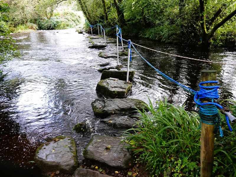 Day 6 (Tuesday, 9 September 2025) – Camp (An Cam) to Annascaul (Abhainn an Scail): Looking back at the stepping stones after 14 people (a party of 12 American and Swiss friends travelling together, plus Heather and I) had safely used them to cross the river. |