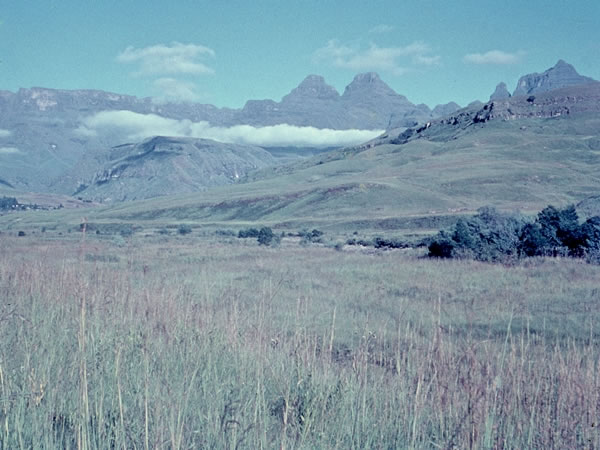 Looking up at the peaks on the northern side of the valley. From left to right, the mountains in the right-hand half of the photo are the Inner and Outer Horns, the Bell, and Cathedral Peak.