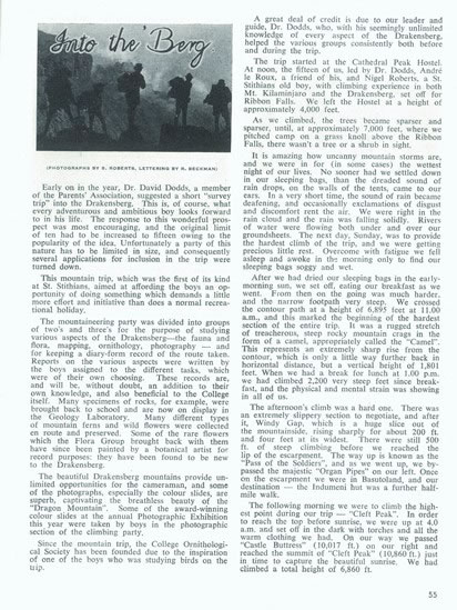 … an article by Gordon Martin about our April 1962 climbing trip. Entitled “Into the ‘Berg”, I was delighted to see …