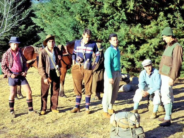 Six members of our eight-strong climbing party are in this photograph that was taken near the Royal Natal National Park hotel before we started heading up towards the escarpment. From left to right are Bill Moir, John Cooper, Pip Cooper, Hugh Laburn, Gordon Martin, and Dave Dodds. Bill, John, Pip, Hugh, and Gordon were all students at St Stithians College, the Methodist boys’ boarding school from which I’d matriculated the previous year, and Dave Dodds was a Johannesburg dentist who introduced me to climbing. Missing from the photograph are André le Roux (a friend and climbing partner of Dave Dodds) and me (an 18-year-old about to leave South Africa to go to the United States on an AFS scholarship). |