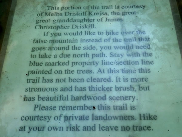 This notice on the signpost next to the gate caused me to veer off the main trail and head “due north” instead, taking a “more strenuous” route through “thicker bush” and “beautiful hardwood scenery.”