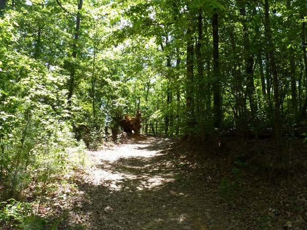 Nearing the gate where, on my way up Driskill Mountain, I’d branched off the trail and headed up through the woods via a false summit to get to the Louisiana state highpoint.