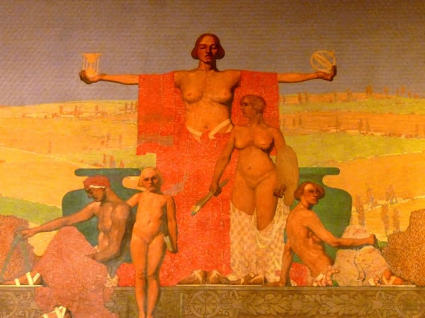 The Louisiana state capitol is a prime example of an art-deco building, and the interior of the capitol contains murals that emphasise art deco’s striking symmetry.