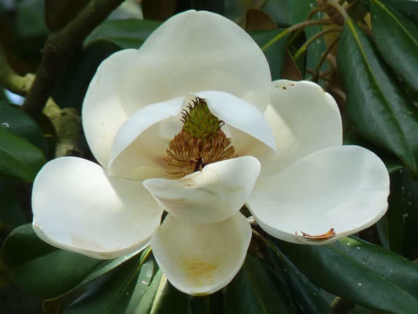 The magnolia is the state flower of Louisiana, and the grounds surrounding the state capitol contained some superb magnolia trees with distinctive creamy-white blossoms.