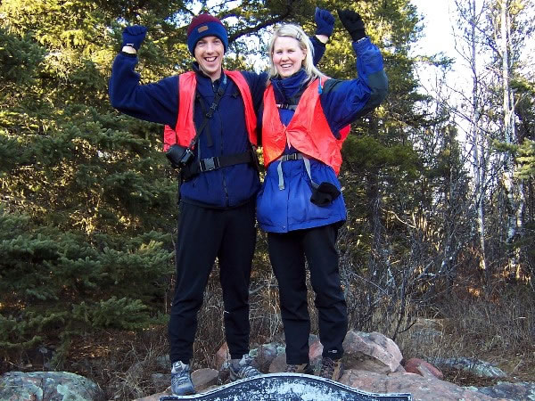 Evan Roberts and Cathy Fitch at the summit of Eagle Mountain. A little more than nine months after this photograph was taken, Evan and Cathy got married at Lutsen, proving that
