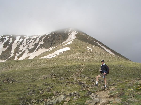 At 8:15 am – after we'd been hiking for two-and-a-quarter hours – Eric took this photo of me as we neared the mountain's steeper slopes that would eventually lead us to the summit of Mt Elbert.