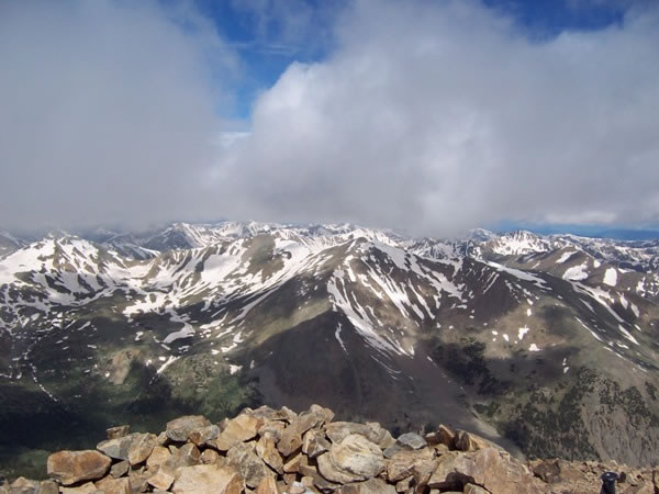 Before the clouds covered the summit, though, I did get a few pictures of the view from the top, including this one looking west across the Rocky Mountains.