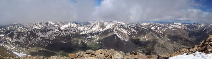 This is a three-shot panoramic view looking west-north-west from the summit of Mt Elbert.