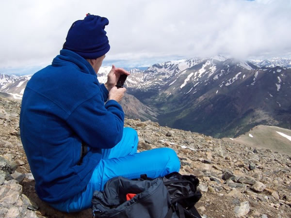 We paused after a few minutes to see if there was cell-phone coverage. There was on Eric's phone, so we both rang home and left messages saying we'd successfully reached the summit of Mt Elbert.
