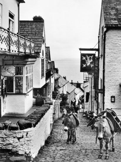 While visiting my father’s father, I visited Clovelly, which is also in Devon. Clovelly has steep, narrow cobbled-lanes that go down to Bideford Bay, and donkeys were used to carry goods through the village. This is yet another picture I didn’t take: it’s a photograph of a postcard that I bought in Clovelly in 1963. |