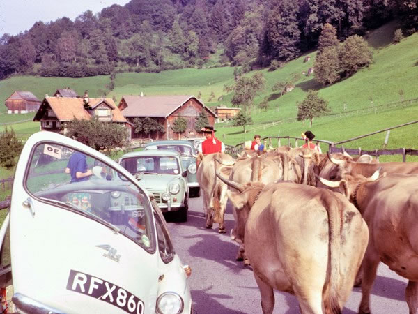 After Bill, Dave, Gary, and I left Zermatt, we spent two more nights in Switzerland. Then, on Saturday, 31 August, we drove though four countries – the second time in two weeks that I’d done so. We started the day’s journey in Switzerland, where we experienced a uniquely Swiss traffic jam. |