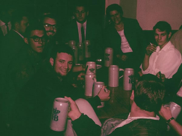 Jolly drinkers in the Hofbräuhaus am Platzl included Bill, Dave, and Gary (who are on the left-hand side of the table).