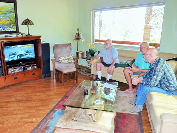 On Sunday, 8 September 2013 – fifty years to the day after we watched the Italian Grand Prix at Monza – the four of us sat in Dave’s living room in California and watched the 2013 Monza Grand Prix live on television. From left to right are Gary, Dave, and Bill. In 2013, the German driver, Sebastian Vettel, was 26 years old when he won Monza, and he was also that year’s world championship driver. |