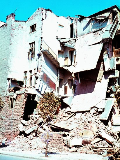 More than a thousand people were killed as a result of the 1963 Skopje earthquake – the toll doubtless amplified by the fact that the quake occurred at 5:17 in the morning. Many people would have been asleep in apartments such as these. In my diary I noted that the city was a “picture of devastation & poverty.” |