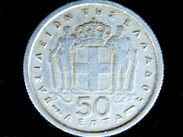 Greece was the only other country where I didn’t get a patch, so the royal coat of arms on a 50 lepta Greek coin (or half a drachma) that I still have will have to do. (It should be noted, though, that Greece no longer uses this coat of arms: the monarchy was deposed in 1973.) |