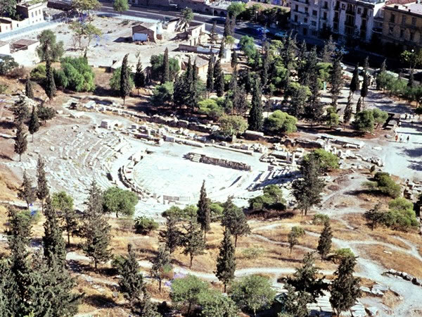 Looking down from the acropolis onto the remains of the Theatre of Dionysus.