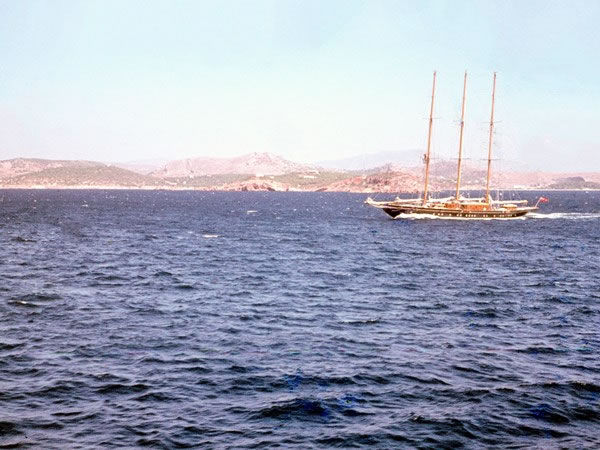 On Wednesday afternoon, 18 September, we caught the SS Despina from Piraeus (Athens’ port) to the island of Syros – a voyage that took six-and-a-half hours. On the way, I took this photograph of an elegant three-masted yacht going in the opposite direction. Subsequent research suggests the yacht was the Creole, which was then owned by the Greek shipping magnate, Stavros Niarchos, and later owned by the Gucci sisters. |