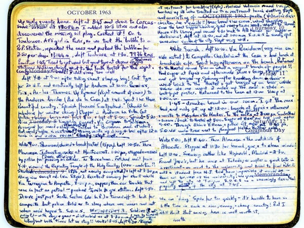 … and this is a photograph of the pages that contain the diary entry I was writing when Bill took his photograph of three of us at a “sandy spot somewhere south of the city” of Valencia.