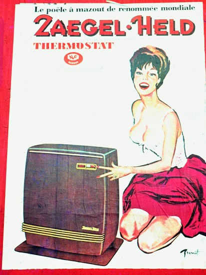 This French poster amused the four of us. It was more sexually explicit advertising than seen either in South Africa or in many parts of the USA in the early 1960s. More amusing, though, is the fact that if the model had worn a few more clothes, she probably wouldn’t have needed an electric heater. |