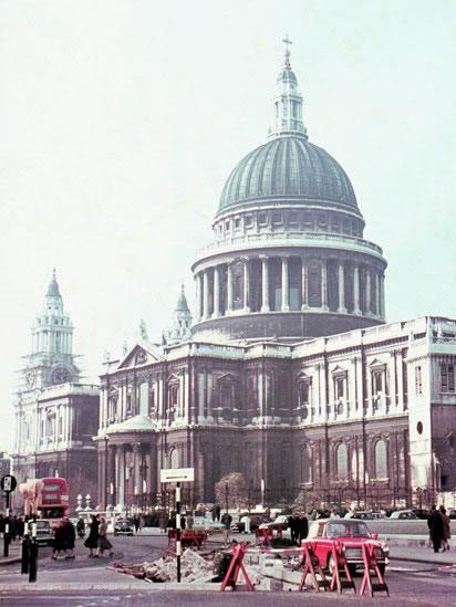 Like many of the buildings in London in 1963, St Paul’s Cathedral was coated with centuries of soot and grime, …