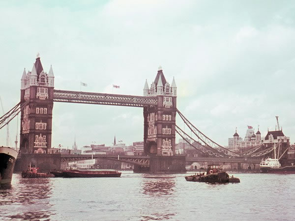 Tower Bridge was built between 1886 and 1894. The Tower of London, which can be seen near the right-hand edge of the photograph, is much older: it dates back to the time of William the Conqueror.