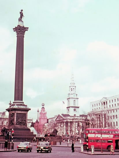Trafalgar Square, with Nelson’s Column on the left, and – immediately to the right of the lion below the column – St Martin’s in the Fields.