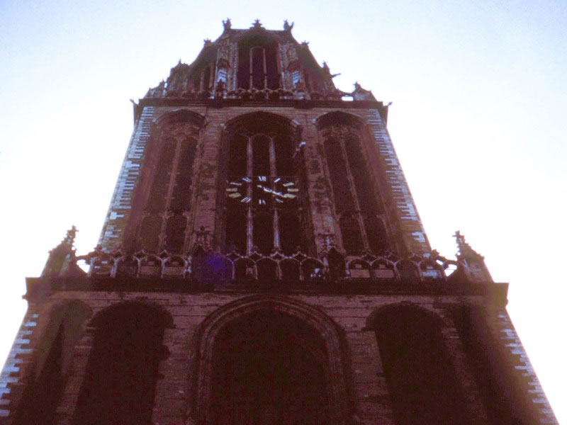 Day 6 (20 September 1969) – UTRECHT: Only one photograph survives from our time in Holland. On our final evening in Utrecht, Heather and I joined Auke and Kitty Kransen at a concert in a small chapel alongside the Utrecht domtoren – i.e., the city’s cathedral tower. This is a photograph looking up at the 112 metre-high tower. It is the tallest building in Utrecht and also the tallest church tower in the Netherlands. |