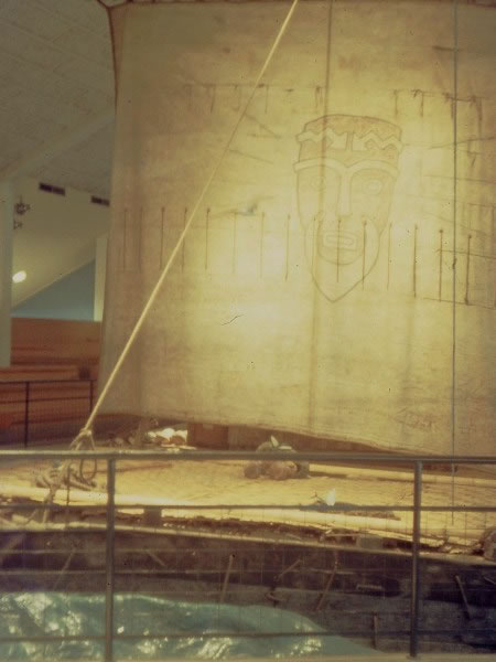 Day 17 (1 October 1969) – OSLO: We arrived in Oslo in the late morning. Heather and I were dismayed to find we couldn’t afford to stay there. The city’s youth hostel was going to cost us 17 kroner – the equivalent of £1 sterling – each per night, so Charlie, Heather, and I decided to spend the rest of the day seeing something of the city before driving through the night and back to Denmark. Camera-shake spoiled the photographs I took in the Bygdoy Viking ships museum, but this picture, taken in the neighbouring Kon Tiki museum, is possibly passable. It shows the sail on the hand-built raft that Thor Heyerdahl and his crew had sailed from South America to Polynesia in 1947. As a school boy in the early 1950s, I had been entranced by the black-and-white documentary film that was made about the voyage. |
