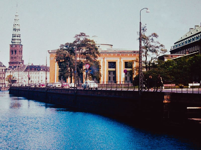 Day 20 (4 October 1969) – COPENHAGEN: The building with the impressive tower on the left-hand edge of the photograph was St Nicholas’ church until the end of the 18th century, but it’s now an arts centre. The orange building in the middle of the picture is Thorvaldsen’s museum, which was specially built to display the works of the Danish and Icelandic sculptor, Bertel Thorvaldsen. |