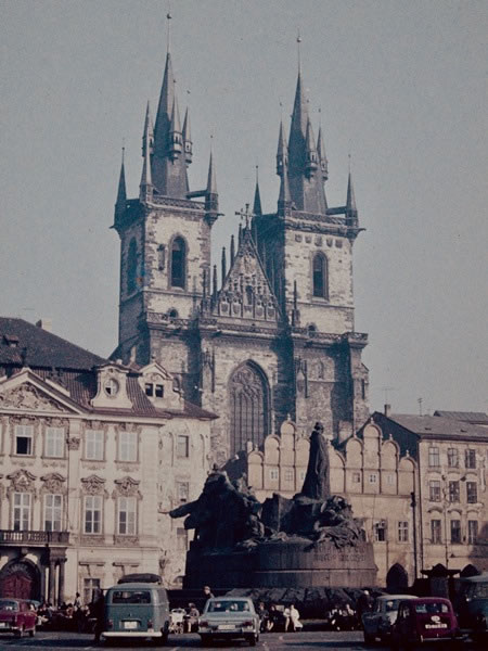 The Jan Hus memorial was officially opened on 6 July 1915 on the 500th anniversary of the Protestant reformer’s death at the stake. The Tyn church is behind Hus’ statue.