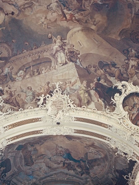 Day 45 (29 October 1969) – WEST TYROL, AUSTRIA: Although a stout grill prevented us from entering of the Cistercian monastery’s chapel, I poked my camera though the grill’s iron bars and aimed it at the ornate ceiling, where I captured this picture of Salome holding up the bloody head of John the Baptist. |
