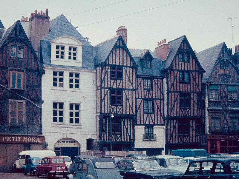 Day 50 (3 November 1969) – TOURS: Heather and I spent three nights in Tours, staying with M. and Mme. Rainer, friends that my father and his mother first met in Brittany in 1926. As a result, we split up with Lyn (who returned to England separately while we took some of her luggage back with us in our car). On 3 November we saw some of the sights of Tours, including Place Plumerau, “famous for its stunning 15th-century half-timbered houses.” On 3 November, we also notched up a notable milestone: we had driven exactly 5,000 miles in 50 days. It’s little wonder, then, that I noted in my diary that we were “exhausted”! |