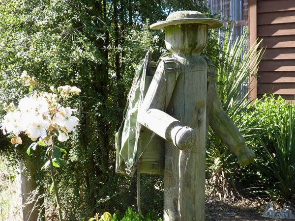 This carving of a tramper / hiker / bush-walker standing next to Station Hut is an apt illustration of what we would be doing for the next four days – except for the fact that I doubt that anyone these days would carry such an old-fashioned external-frame rucksack! |