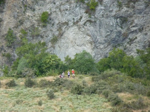 Looking back down at Chris, Rosalie, Tracey, and Phillip on a ledge above the Leishman Stream.