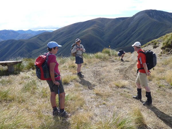 Helen, Tim, Heather, and I had lunch at Fiery Pass (1,284 metres / 4,213 feet). At 1:50 pm, just as we were setting off again after a very pleasant 40-minute break,