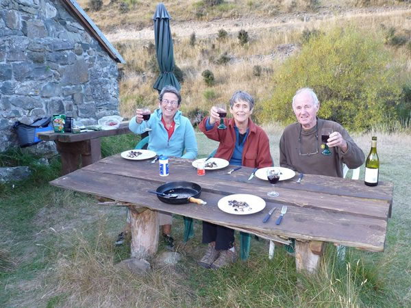 Dinner at Sutherland’s Hut – with wine again (of course, because we didn’t have to carry all our gear).