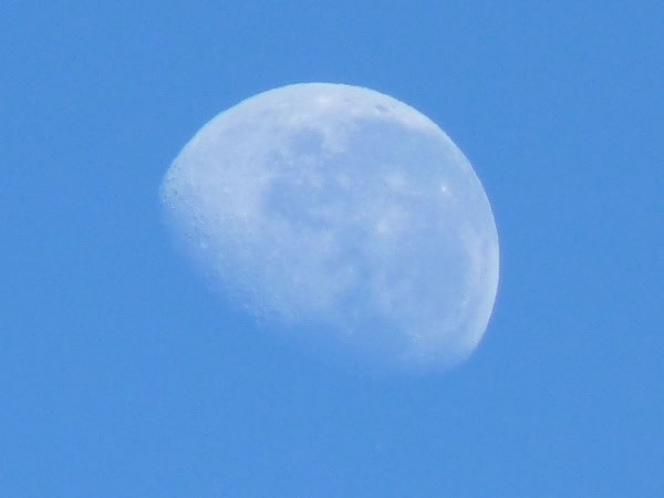 It was Easter weekend, and because Easter is celebrated on the first Sunday after the first full moon that occurs after the March equinox, it’s not surprising that there was still a large three-quarter moon visible in the bright blue morning sky