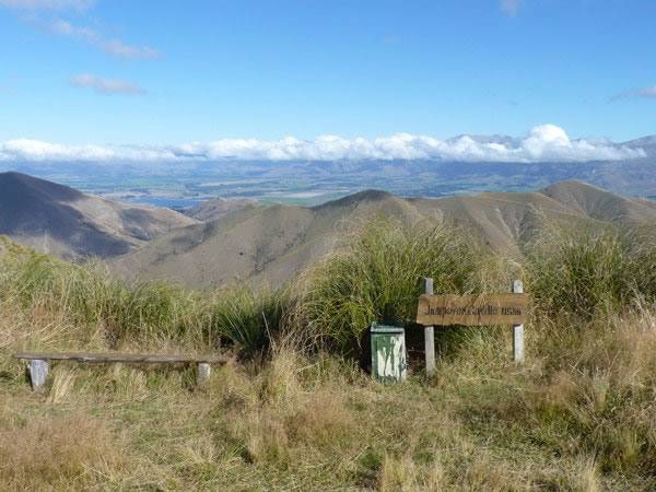 ... Jumpover Saddle, which is 1,151 metres / 3,776 feet above sea-level, and has good views west towards Lake Opuha and the Fairlie Basin. It took us two hours to get from Sutherland’s Hut to Jumpover Saddle.
