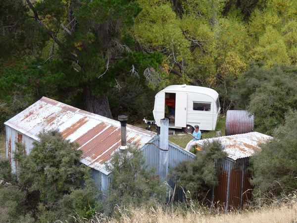 The Devil’s Creek Hut, which Helen and I reached at about 3:15 pm. The day’s walk (which – excluding our Devil’s Peak side-trip – was nine kilometres / five-and-a-half miles long) had taken us five-and-three-quarter hours. Heather and Tim had been at the hut since about 1:00 pm. |