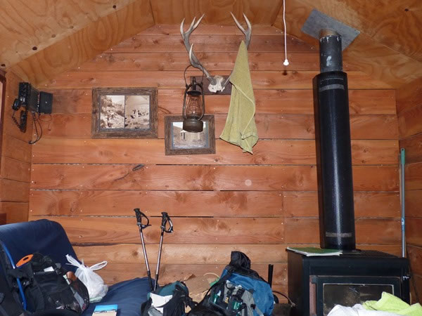 The interior of the Devil’s Creek Hut, which was built in 1938. The Auckland foursome, Heather, and I slept in the hut …