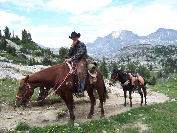 Just after reaching the top of a small pass, we encountered the wrangler and his mules coming towards us, heading back to their ranch near Elkhart Park after dropping off our gear on the far side (the northern side) of Island Lake.