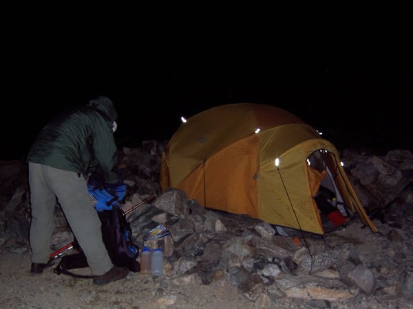 On Tuesday, 18 July 2006, Mark got up at 2:30 am and the rest of us did so a short while later. This photograph of Carl preparing for the climb was taken at 3:25 am.