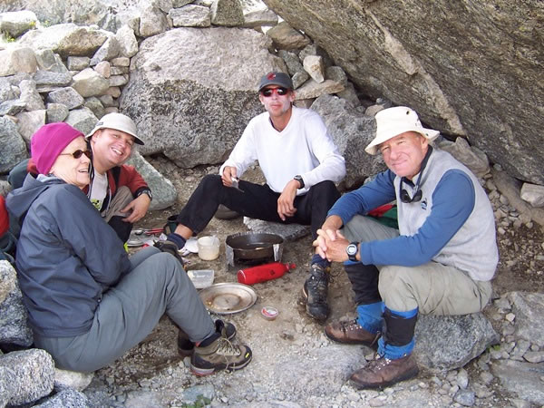 We rested and recharged our batteries, staying at our old campsite for an hour-and-three-quarters. From left to right: Squeek, Rob, Mark, and Carl.