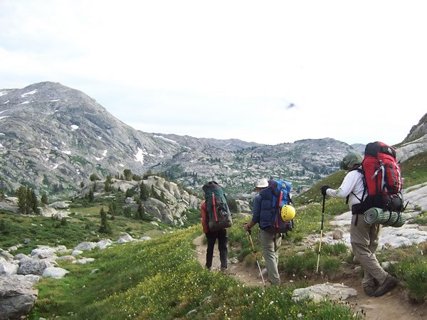 After almost an hour-and-a-half, we started walking again. Mark is in the lead, followed by Carl and Rob. It’s not a helicopter in the air above Carl’s head; it’s a mosquito!