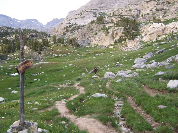 I walked ahead to the top of the small pass that leads to the Seneca lakes, and took this photograph looking back down on the rest of the party making their way slowly up the hill.