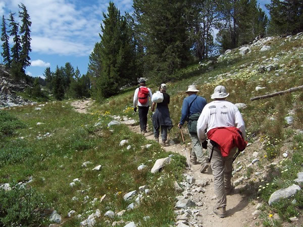 Mark, Squeek, Carl, and Rob heading up a small pass …